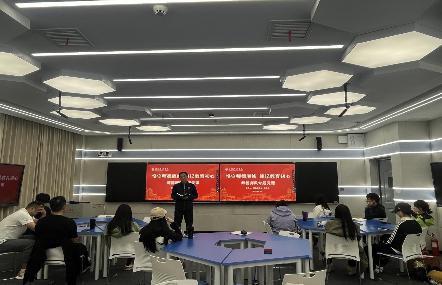 9月23日上午10:30,体育部党总支在毕昇楼212多媒体教室组织党员教师及教职工,开展以“恪守师德底线,铭记教育初心”为主题的师德师风专题党课学习,党总支书记陈鑫林担任主讲人。