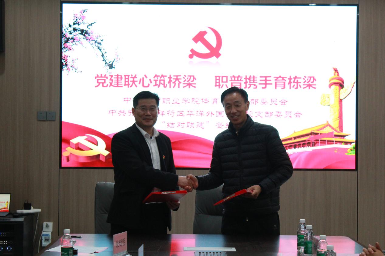 为创新基层党建模式,探索职普教育融合新路径,11月7日下午,开封职业学院体育部党总支与开封市华洋外国语学校党支部“结对联建”启动仪式在华洋外国语学校成功举行。此次活动旨在通过职普携手,构建“资源共享、优势互补、互相促进、共同提高”的党建工作新格局,共同为培育时代新人贡献力量。