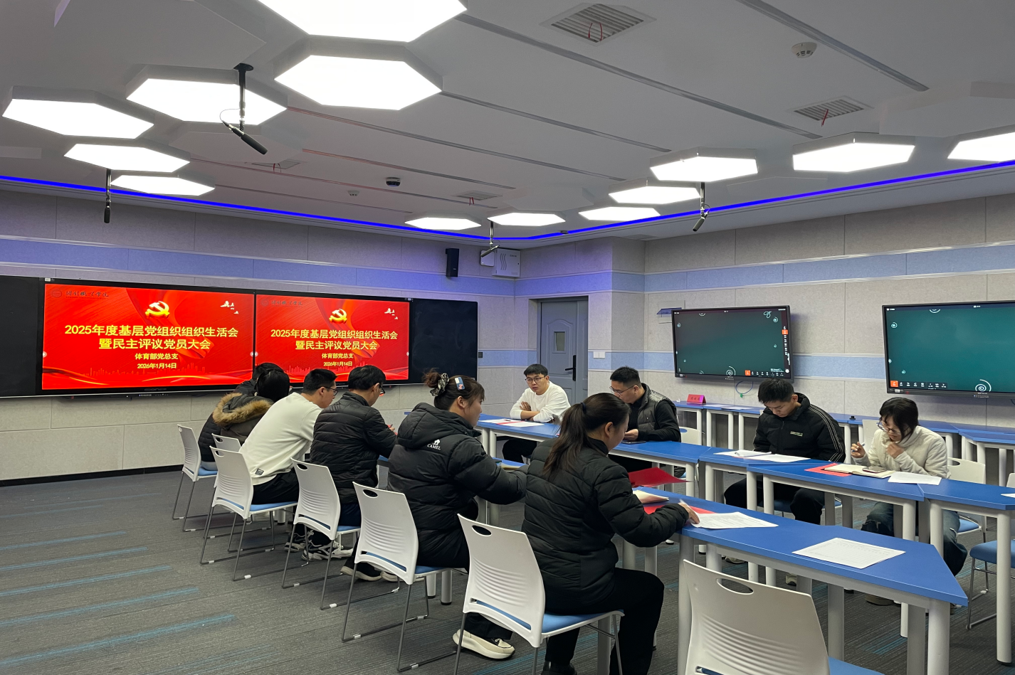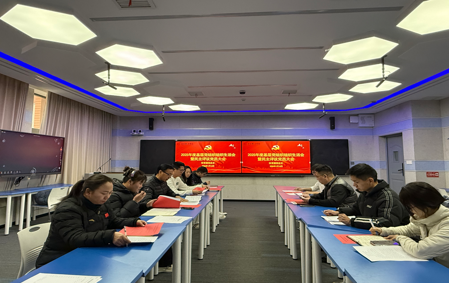 为全面精准把握党的二十大及二十届历次全会精神实质,切实推动党纪学习教育向纵深发展,实现常态化、长效化目标。2026年1月14日上午10:00,体育部党总支在毕昇楼212会议室召开2025年度基层党组织组织生活会暨民主评议党员大会。校党委委员、组织(统战)部部长高云龙到会指导,部门党总支书记陈鑫林与全体党员参会,党总支组织委员杜丽主持会议。部门党总支应到党员13名,实到10名,3名党员因特殊情况请假,会议符合召开要求。